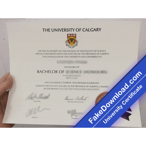 The fake Calgary university certificate is 100% similar to the original and is presented in full HD quality.