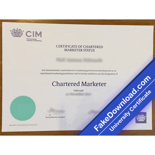 The fake Chartered Institute of Marketing (CIM) university certificate is 100% similar to the original and is presented in full HD quality.