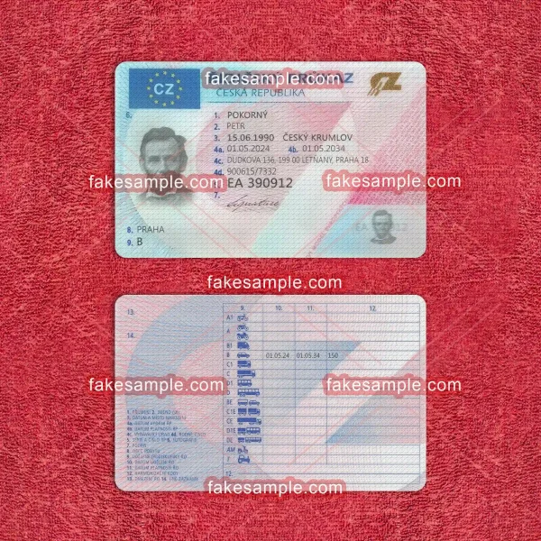 To accompany the digital expertise, Fakesample offers the making of physical Czechia Driver's License cards. Adhering to exact specifications commonly found in genuine cards, Fakesample ensures that the replicas pass a superficial authenticity test. By employing advanced printing techniques and top-grade materials, these physical cards embody both durability and credibility, closely resembling their authentic counterparts in appearance and feel.