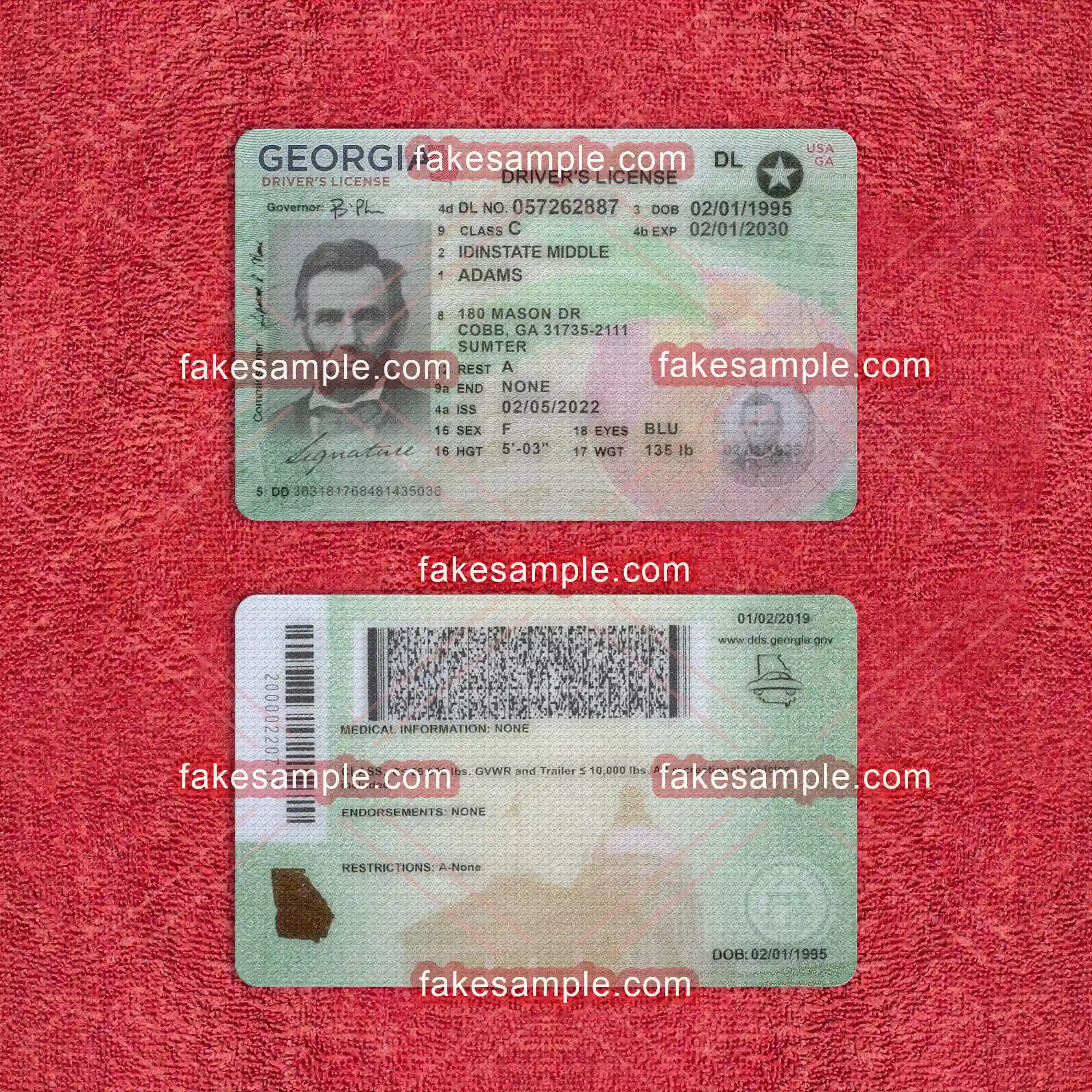 To accompany the digital expertise, Fakesample offers the making of physical Georgia (U.S. state) Driver's License cards. Adhering to exact specifications commonly found in genuine cards, Fakesample ensures that the replicas pass a superficial authenticity test. By employing advanced printing techniques and top-grade materials, these physical cards embody both durability and credibility, closely resembling their authentic counterparts in appearance and feel.