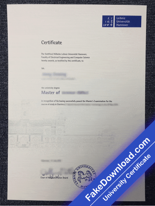 The fake Hannover university certificate is 100% similar to the original and is presented in full HD quality.