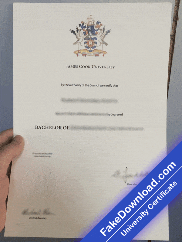 The fake James Cook university certificate is 100% similar to the original and is presented in full HD quality.