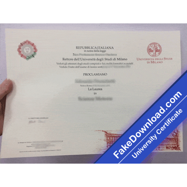 The fake Milan university certificate is 100% similar to the original and is presented in full HD quality.