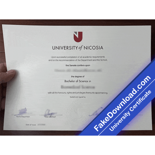 The fake Nicosia university certificate is 100% similar to the original and is presented in full HD quality.