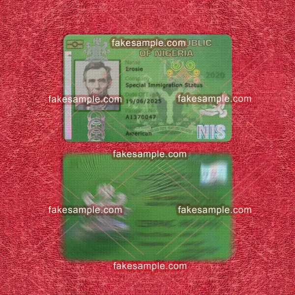 Nigeria , known for its beautiful landscapes and rich history, attracts people from all walks of life. Whether for business or longer-term residence, possessing a realistic-looking residence card can be essential. Fakesample specializes in the design and customization of a broad range of documents, including Nigeria Residence Cards. These templates are crafted by our skilled graphic team to ensure they mimic genuine documents in detail and quality.