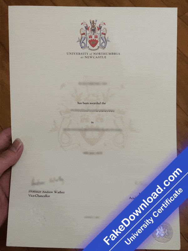 The fake Northumbria university certificate is 100% similar to the original and is presented in full HD quality.