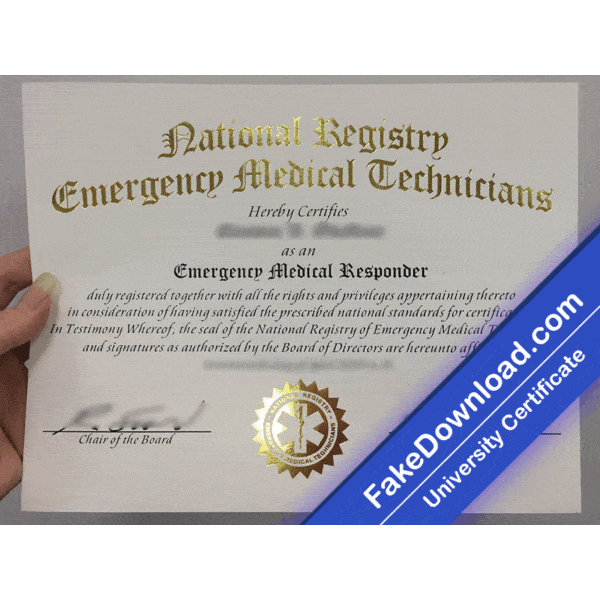 The fake NREMT university certificate is 100% similar to the original and is presented in full HD quality.