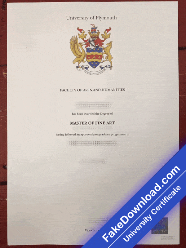 The fake Plymouth university certificate is 100% similar to the original and is presented in full HD quality.