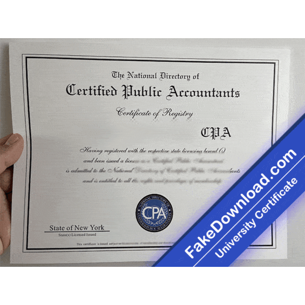 The fake Purchase New York CPA university certificate is 100% similar to the original and is presented in full HD quality.