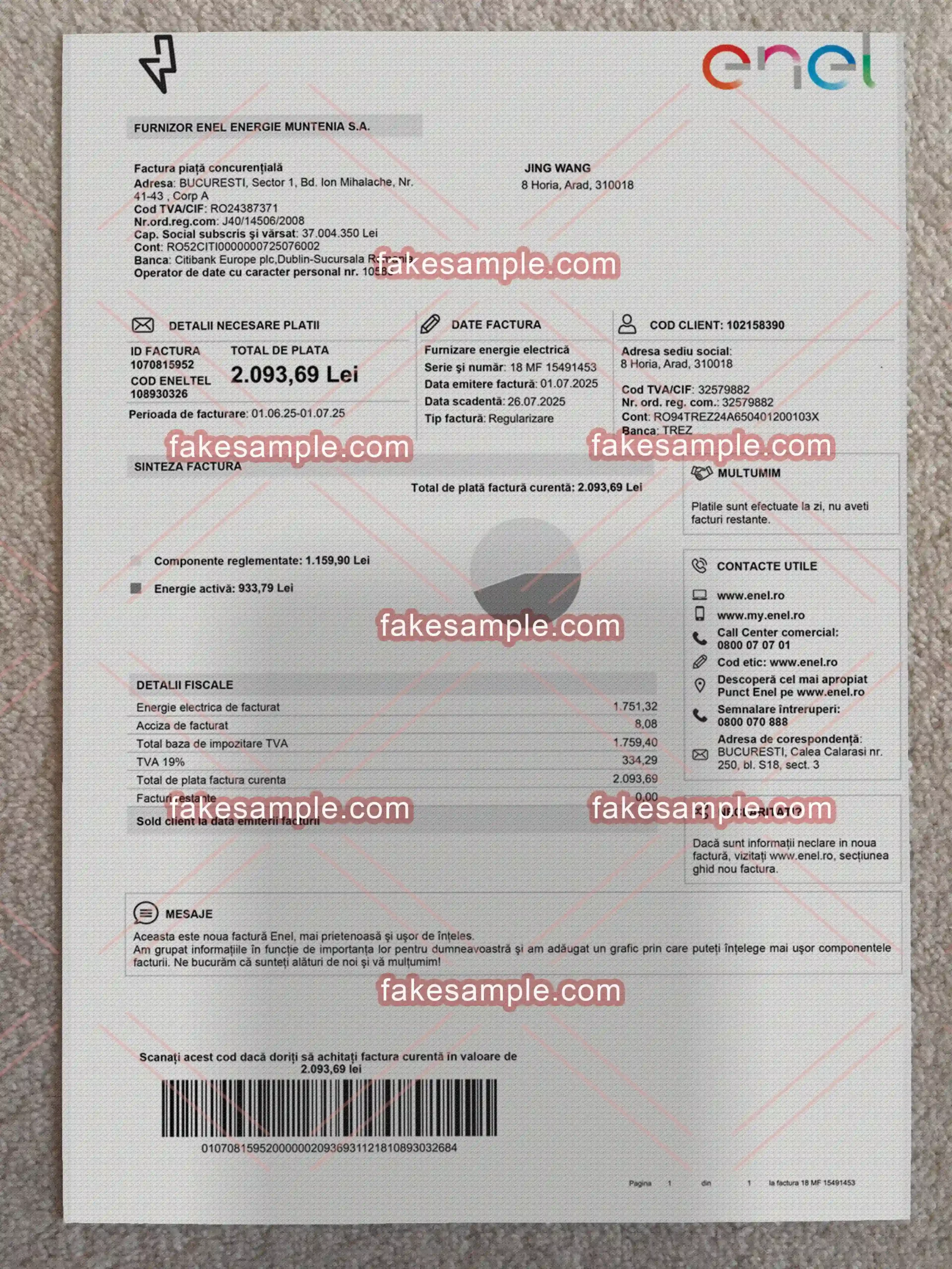 Creating a convincing Romania Proof of Address document demands a deep understanding of local formats, stylistic nuances, and the essential elements required for authenticity. Fakesample’s graphic experts are adept at capturing these nuances, transforming a simple template into a highly convincing document that stands up to scrutiny. Our Romania Proof Address designs are particularly popular for their detailed customization options and professional quality.