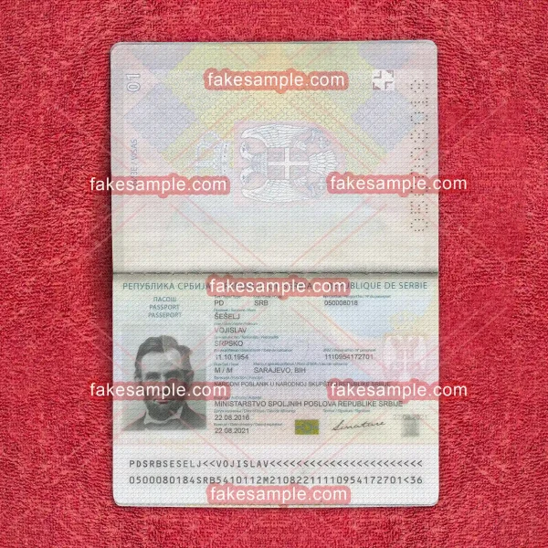 At Fakesample, we recognize the burgeoning demand for realistic and customizable document templates. One of our standout offerings is the Serbia (Version1) Passport Fake Template. Crafted with meticulous attention to detail by our experienced graphic team, our templates replicate the official document's features with striking accuracy and realism. This ensures that our clients receive only the highest quality templates for their specific needs.
