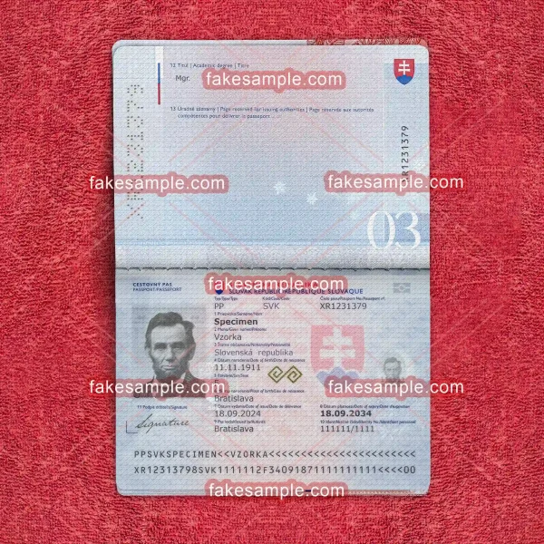 The process of creating a fake template for a Slovakia passport is an art that combines both craftsmanship and advanced technology. Fakesample prides itself on offering downloadable files that mimic the authentic Slovakia passport design, including all intricate details. From the emblematic Slovakia crest to the sophisticated patterns and color schemes, our templates transcend preliminary imitation and venture into the realm of professional artistry.