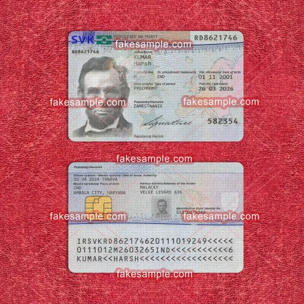 Slovakia , known for its beautiful landscapes and rich history, attracts people from all walks of life. Whether for business or longer-term residence, possessing a realistic-looking residence card can be essential. Fakesample specializes in the design and customization of a broad range of documents, including Slovakia Residence Cards. These templates are crafted by our skilled graphic team to ensure they mimic genuine documents in detail and quality.