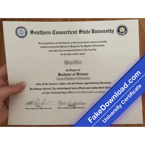 The fake Southern Connecticut university certificate is 100% similar to the original and is presented in full HD quality.