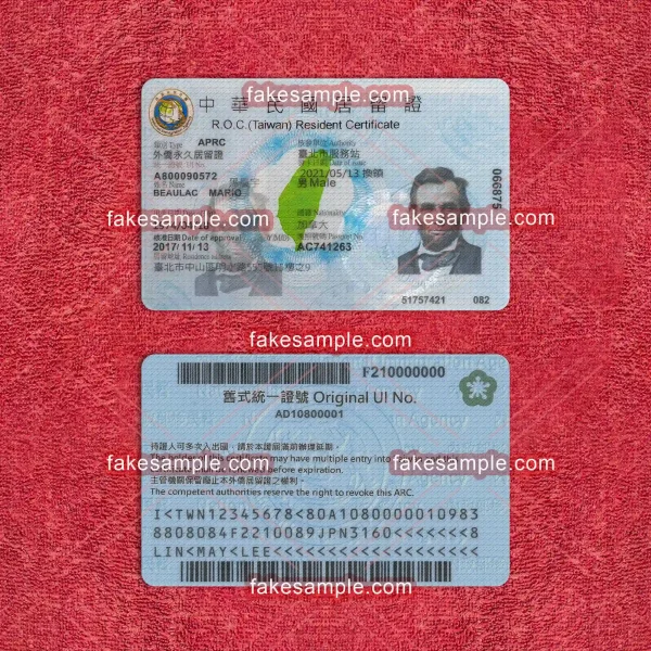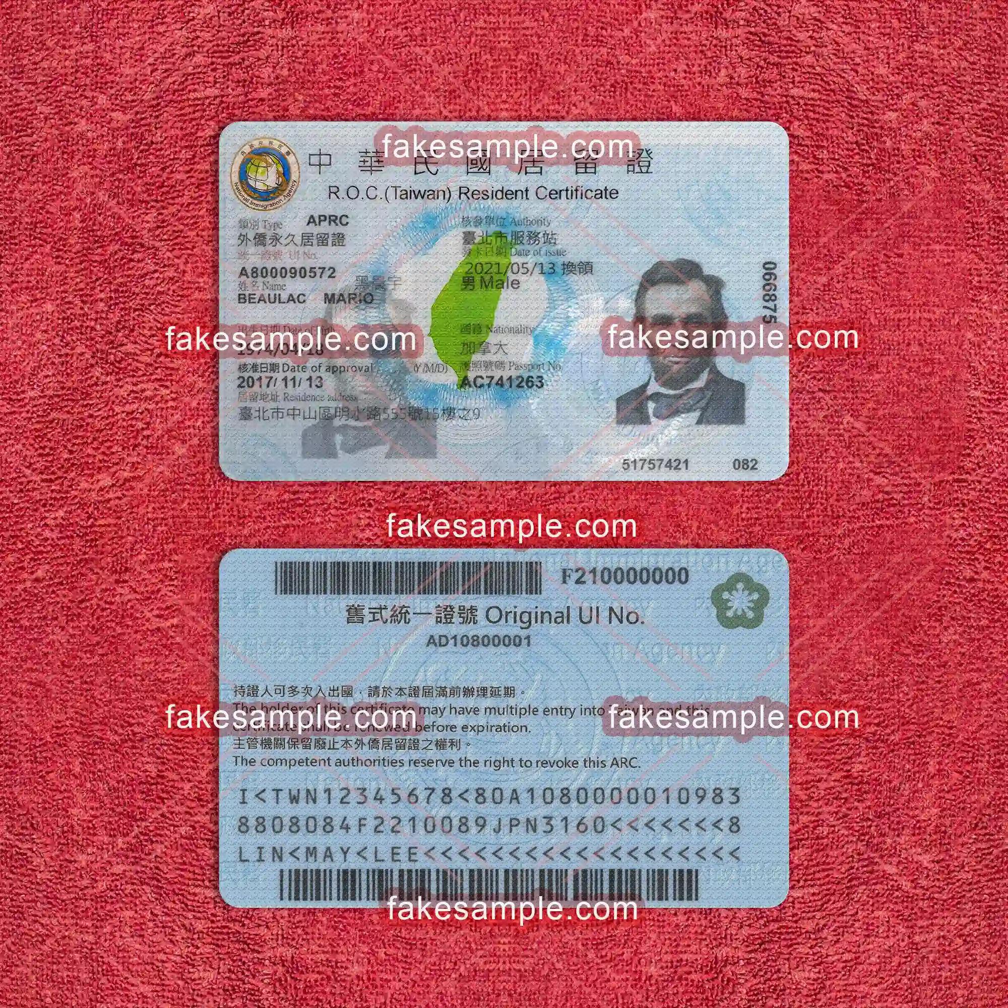 Taiwan , known for its beautiful landscapes and rich history, attracts people from all walks of life. Whether for business or longer-term residence, possessing a realistic-looking residence card can be essential. Fakesample specializes in the design and customization of a broad range of documents, including Taiwan Residence Cards. These templates are crafted by our skilled graphic team to ensure they mimic genuine documents in detail and quality.