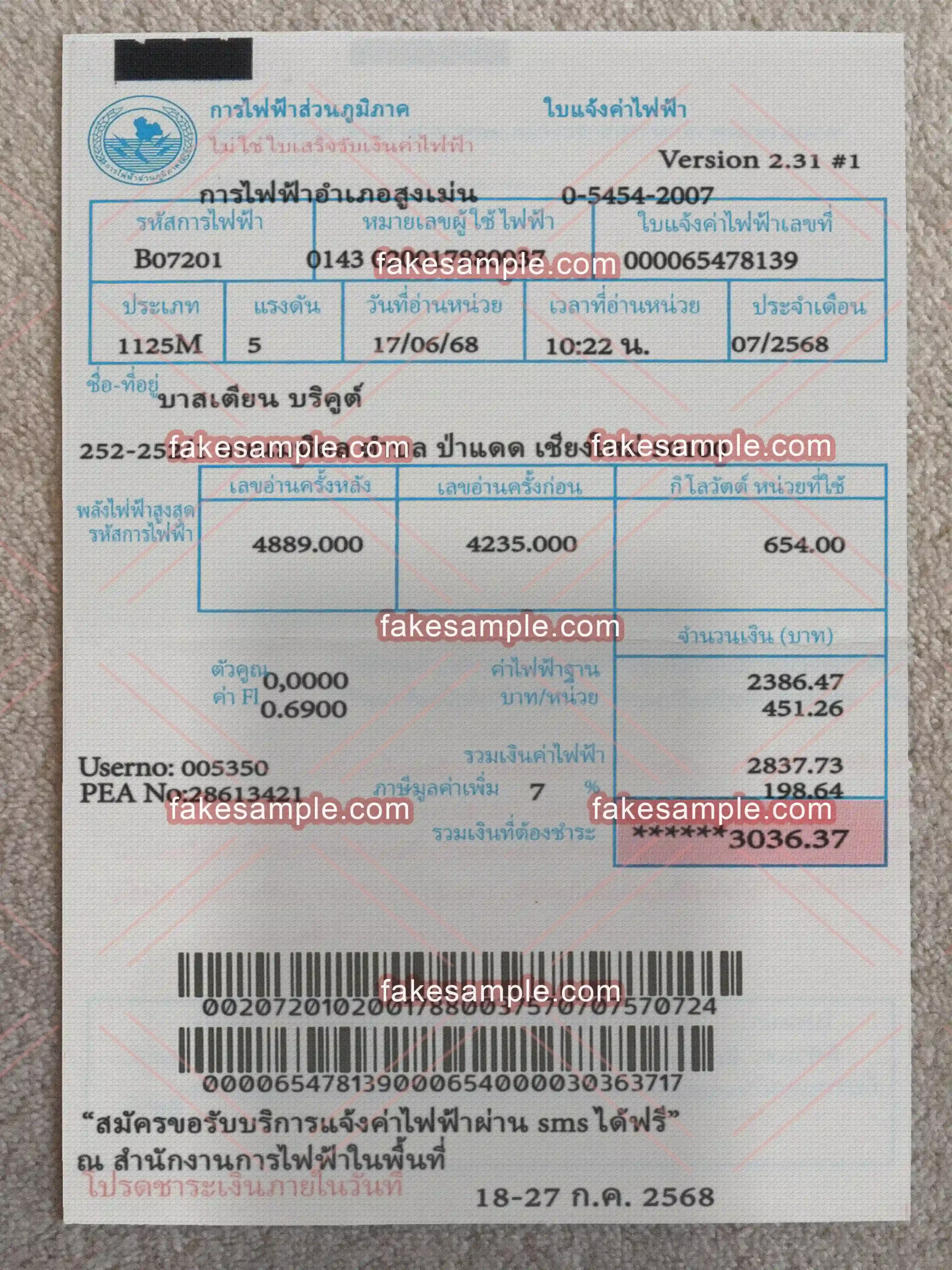 Creating a convincing Thailand Proof of Address document demands a deep understanding of local formats, stylistic nuances, and the essential elements required for authenticity. Fakesample’s graphic experts are adept at capturing these nuances, transforming a simple template into a highly convincing document that stands up to scrutiny. Our Thailand Proof Address designs are particularly popular for their detailed customization options and professional quality.