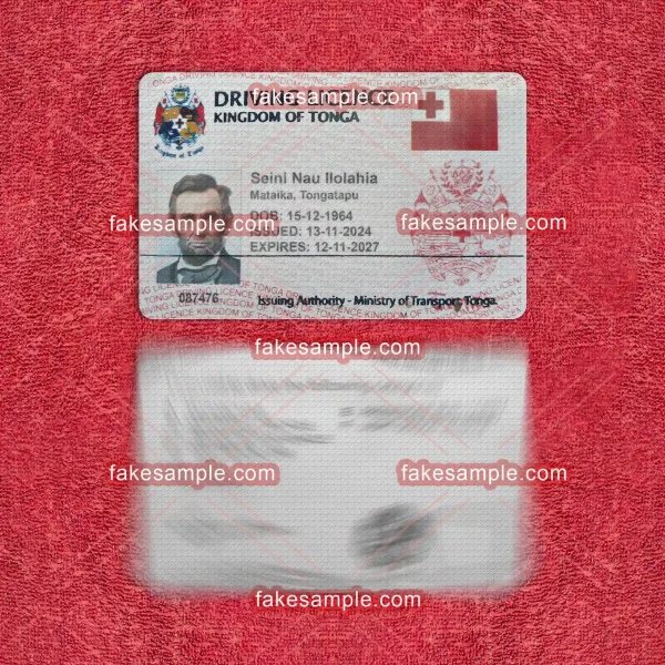 To accompany the digital expertise, Fakesample offers the making of physical Tonga Driver's License cards. Adhering to exact specifications commonly found in genuine cards, Fakesample ensures that the replicas pass a superficial authenticity test. By employing advanced printing techniques and top-grade materials, these physical cards embody both durability and credibility, closely resembling their authentic counterparts in appearance and feel.