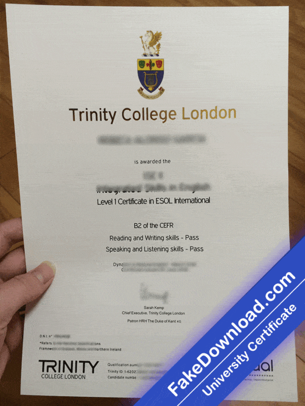 The fake Trinity College London university certificate is 100% similar to the original and is presented in full HD quality.