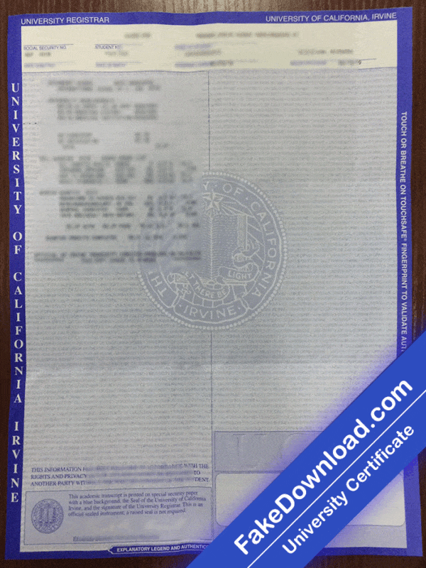 The fake UC Irvine university certificate is 100% similar to the original and is presented in full HD quality.