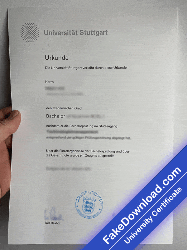 The fake Stuttgart university certificate is 100% similar to the original and is presented in full HD quality.