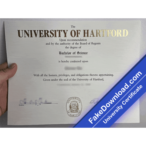 The fake Hartford university certificate is 100% similar to the original and is presented in full HD quality.