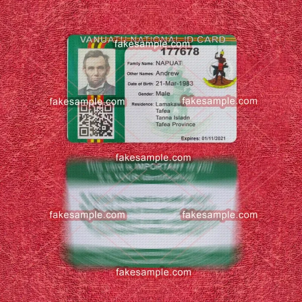 Moreover, Fakesample takes pride in providing Vanuatu Identity Card fake documents that match authentic ones closely. Our graphic experts utilize advanced techniques to craft these documents, ensuring they stand out for their quality and precision. It's an intricate process that emphasizes authenticity without approaching illegality, ensuring that legal concerns are adhered to at every step.