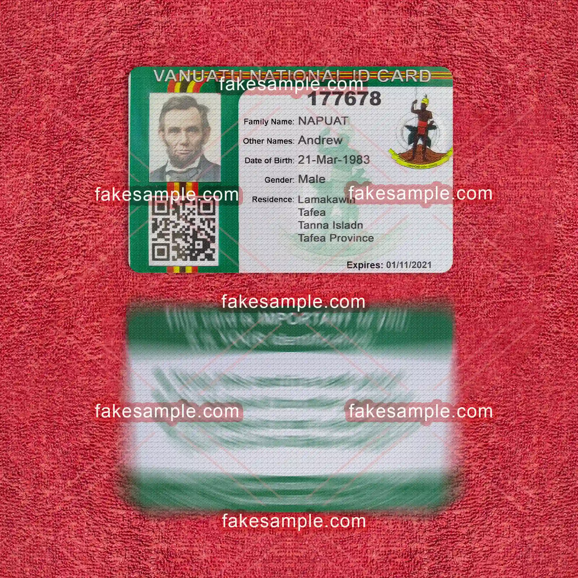 The fake Vanuatu National ID Card Fake Template is 100% similar to the original and is presented in full HD quality.