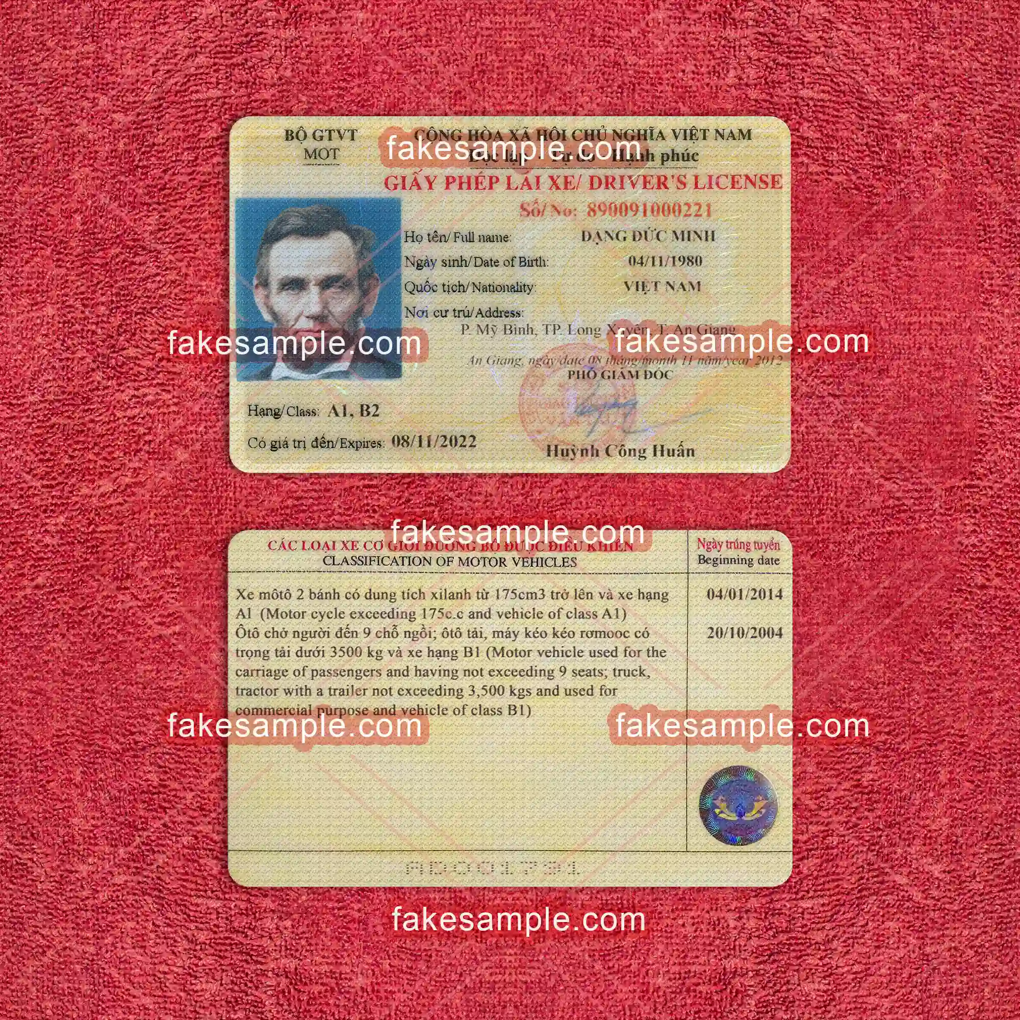 The fake Vietnam Driver Licence Fake Template is 100% similar to the original and is presented in full HD quality.
