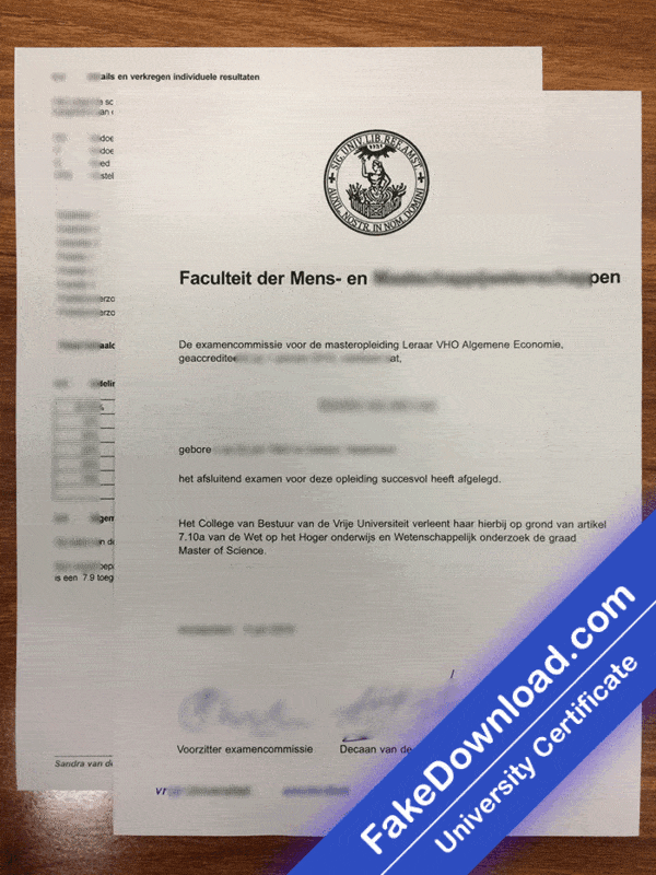 The fake Vrije university certificate is 100% similar to the original and is presented in full HD quality.